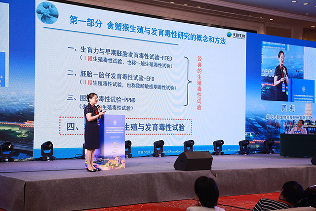 會議期間,周莉博士以“食蟹猴生殖與發育毒性評價策略和案例分享”為題,著重介紹了天勤生物在食蟹猴非臨床生殖與發育毒性領域所建立的完整體系,并展示了天勤生物的實驗室背景數據、孕猴和仔猴生殖與發育毒性的試驗數據以及某單抗透過血睪屏障、胎盤屏障和血乳屏障等數據,目前天勤生物武漢分公司正在為不同客戶開展以注冊為目的的食蟹猴ePPND試驗。